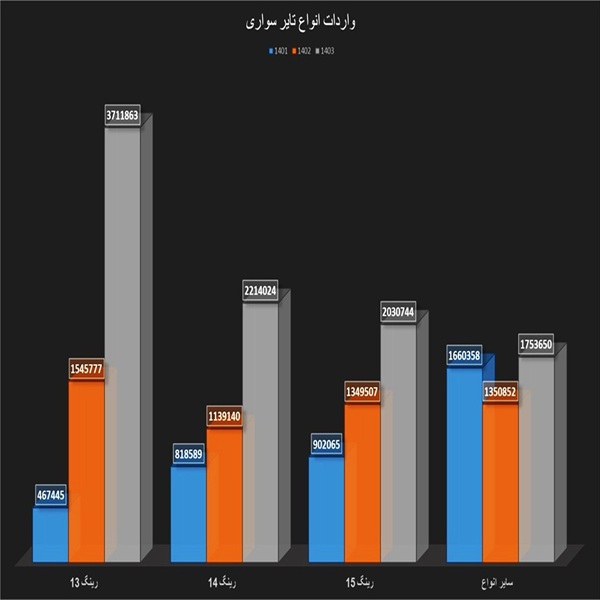بر اساس آمارها مجموع واردات تایر در 1403 به رقمی در حدود 12.5 میلیون حلقه رسیده که از نظر وزنی معادل 255 هزار و 680 تن و ارزشی معادل 906 میلیون دلار بود.