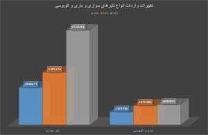 این آمارها بدان معنی است که واردکنندگان در فاصله سال های مذکور شیفت عجیبی به سمت تایرهای سواری داشته اند.
