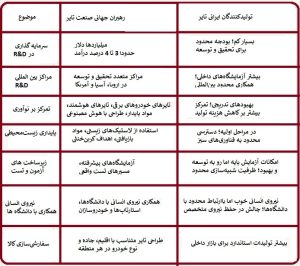 در این بین اما تولیدکنندگان ایرانی با محدودیتهای ساختاری – از بودجه گرفته تا زیرساختها – مواجه هستند که مانع توانایی آنها در رقابت جهانی در حوزه تحقیق و توسعه میشود، تاجایی که ممکن است کل تحقیق و توسعه در همه شرکت های تایرساز ایرانی در حد چندصد میلیون تومان بیشتر نیست و پر کردن این شکاف نیازمند حمایت سیاستی، مشارکتهای بینالمللی و سرمایهگذاری در استعدادها و فناوری است.