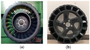 شکل 8. NPT با ساختار متخلخل: ( الف ) تایر لانه زنبوری شش ضلعی؛ ( ب ) تایر میشلن ویژن.