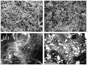 شکل 15. تصاویر SEM از AP بدون تیمار در ( a ، c ) و AP تحت تیمار با ZnO در ( b ، d )؛ نوار مقیاس نشان دهنده 100 میکرومتر در ( a ، b )؛ نوار مقیاس نشان دهنده 10 میکرومتر در ( c ، d ) است.