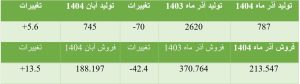 این شرکت در آذر ماه همچنین موفق به تولید 787 تن محصول شد که این رقم در مقایسه با ماه قبل از رشد 5.6 درصدی (تنها معادل 41 تن) حکایت دارد. این میزان در مقایسه با تولید آذر ماه 1403 افتی معادل 70 درصد را نشان می دهد.