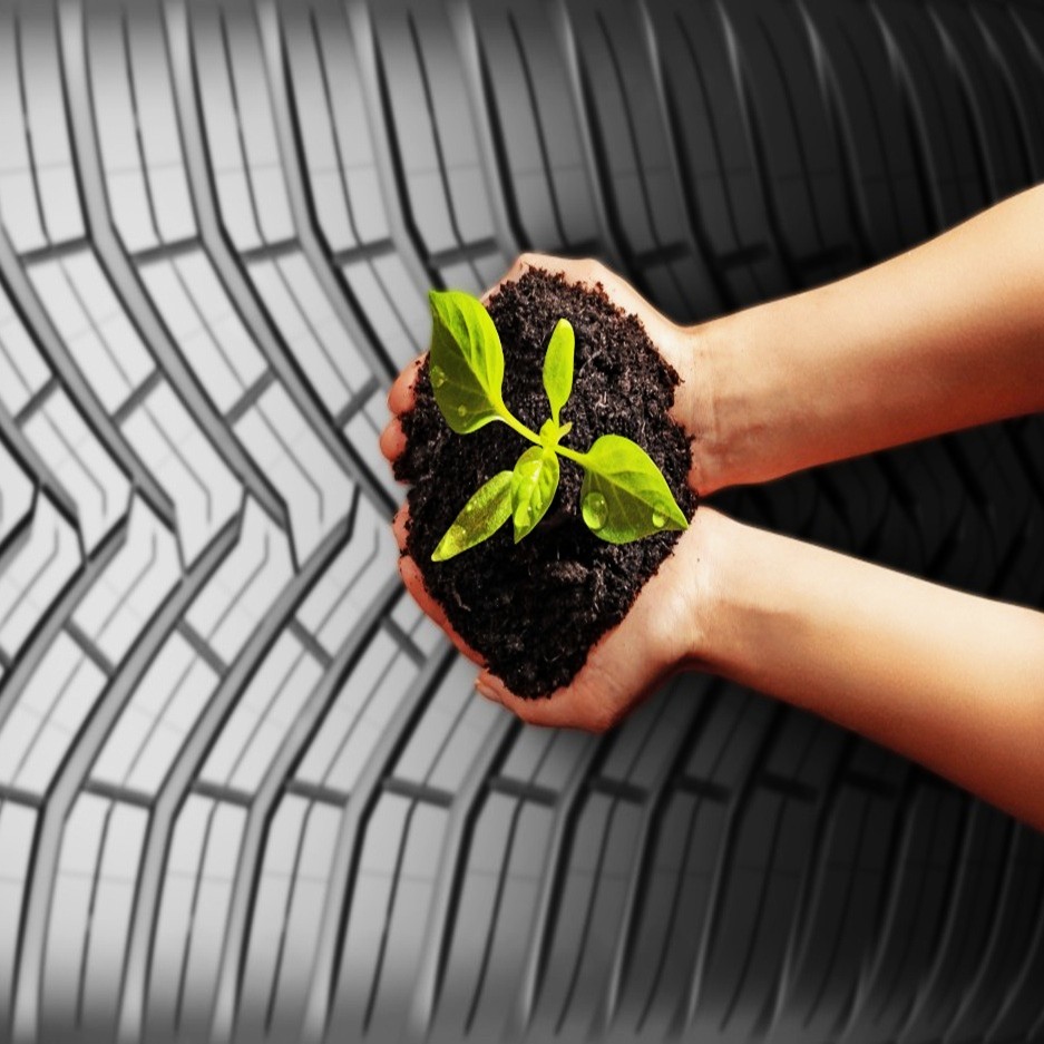 حدود ۲۰۰ ماده اولیه در یک تایر جدید استفاده می‌شود. تایرهای پایدار با جایگزین‌های پایدار، استفاده از مواد اولیه را کاهش می‌دهند. به علاوه مثلث جادویی – مقاومت غلتشی کمتر، چسبندگی بهتر در شرایط مرطوب و مقاومت در برابر سایش – در تایرهای پایدار برای بهره‌وری انرژی بهینه شده‌اند. تایرهای پایدار به طور بالقوه مصرف سوخت از وسایل نقلیه سواری را 5 درصد کاهش می‌دهند تا اثرات زیست‌محیطی را کم کنند.