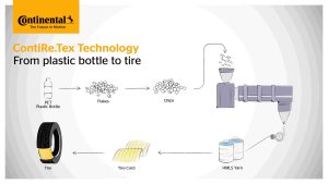 شرکت کنتیننتال با همکاری تولیدکنندهی منسوجات OTIZ، فناوری ContiRe.Tex را برای تبدیل بطریهای PET بازیافتی به نخ پلیاستر برای لاشهی تایر توسعه داده است.